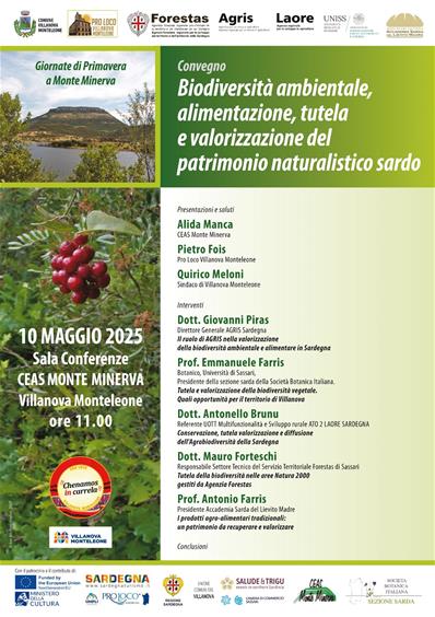 Vi comunichiamo che sabato 10 maggio nella sala conferenze del CEAS di Monte Minerva (Villanova Monteleone, SS) si terrà alle ore 11 il convegno “Biodiversità ambientale, alimentazione, tutela e valorizzazione del patrimonio naturalistico sardo” al quale aderisce la nostra sezione.